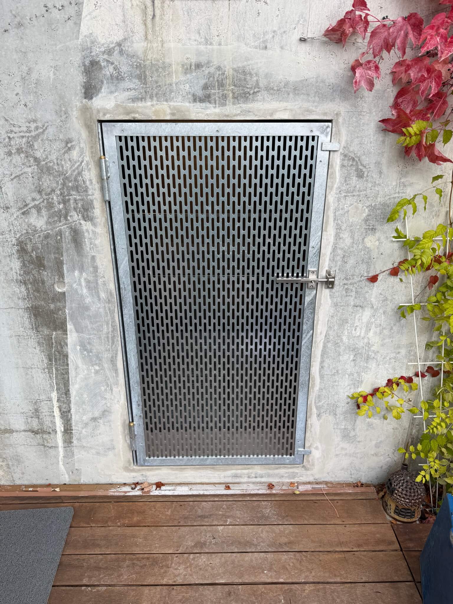 Neue Türe aus Winkelstahl, Lochblech und Stossriegel